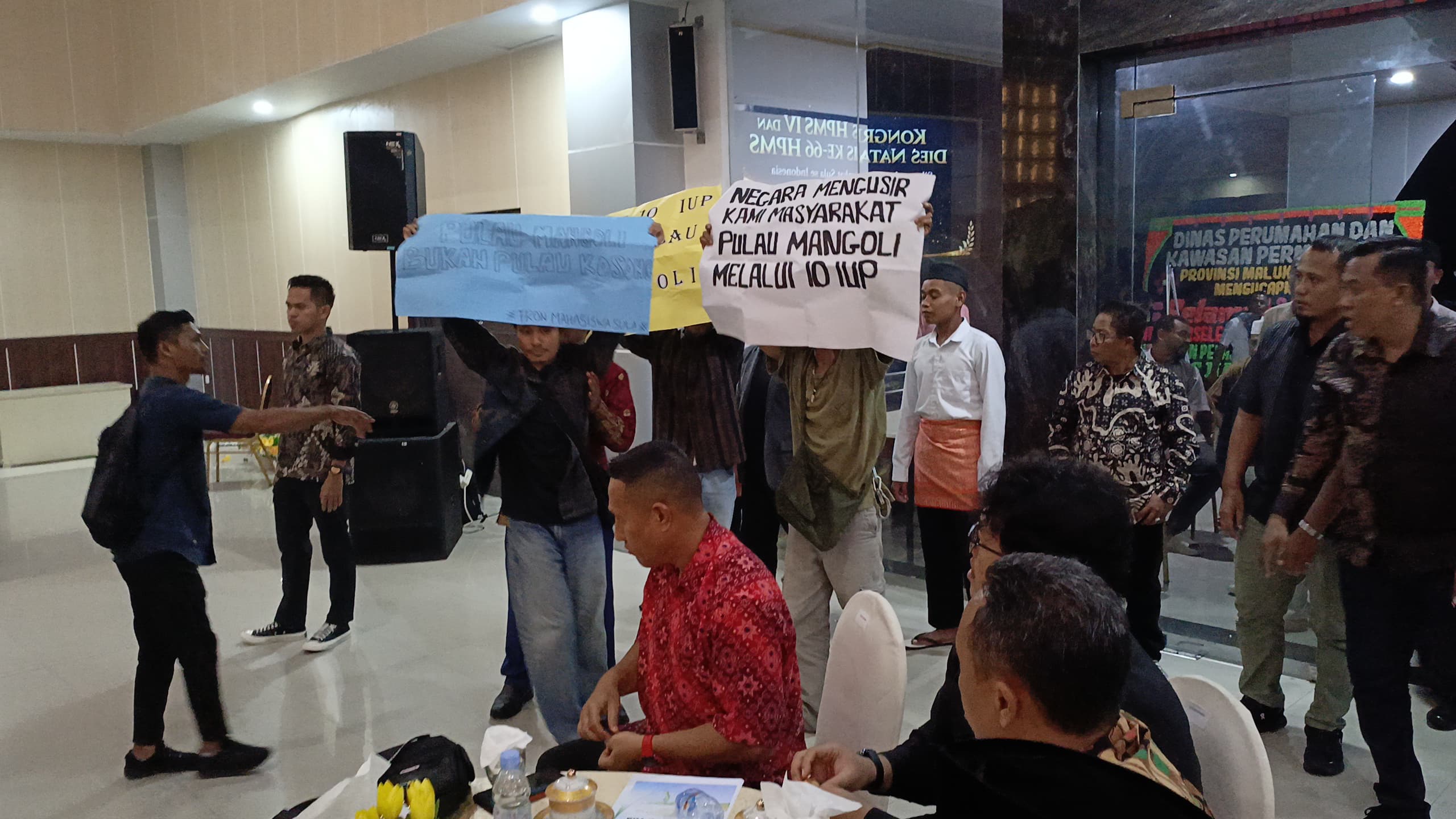 Lingkar.co.id — Aksi damai penolakan 10 Izin Usaha Pertambangan (IUP) bijih besi di Pulau Mangoli, Kabupaten Kepulauan Sula, Maluku Utara, berujung kekerasan dan intimidasi. Insiden itu terjadi saat pelaksanaan Kongres Himpunan Pelajar Mahasiswa Sula (HPMS) IV di Asrama Haji, Kelurahan Ngade, Kecamatan Ternate Selatan, Minggu malam (11/1/2026).