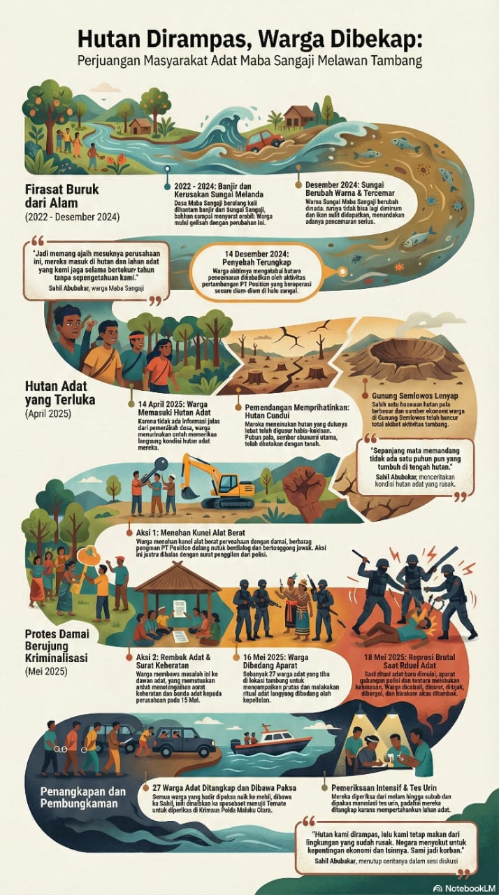 April 2025 itu, warga Maba Sangaji bersepakat masuk hutan memastikan kondisi lahan dan hutan adat. Keputusan itu, diambil lantaran tak ada informasi yang jelas dari  Pemdes. Tepat 14 April pagi itu,  Sahil bersama  warga adat masuk hutan. Namun, saat tiba kondisi hutan memprihatinkan. Sebagian besar hutan adat yang menjadi sumber makan, mencari obat dan memanen pala gundul.