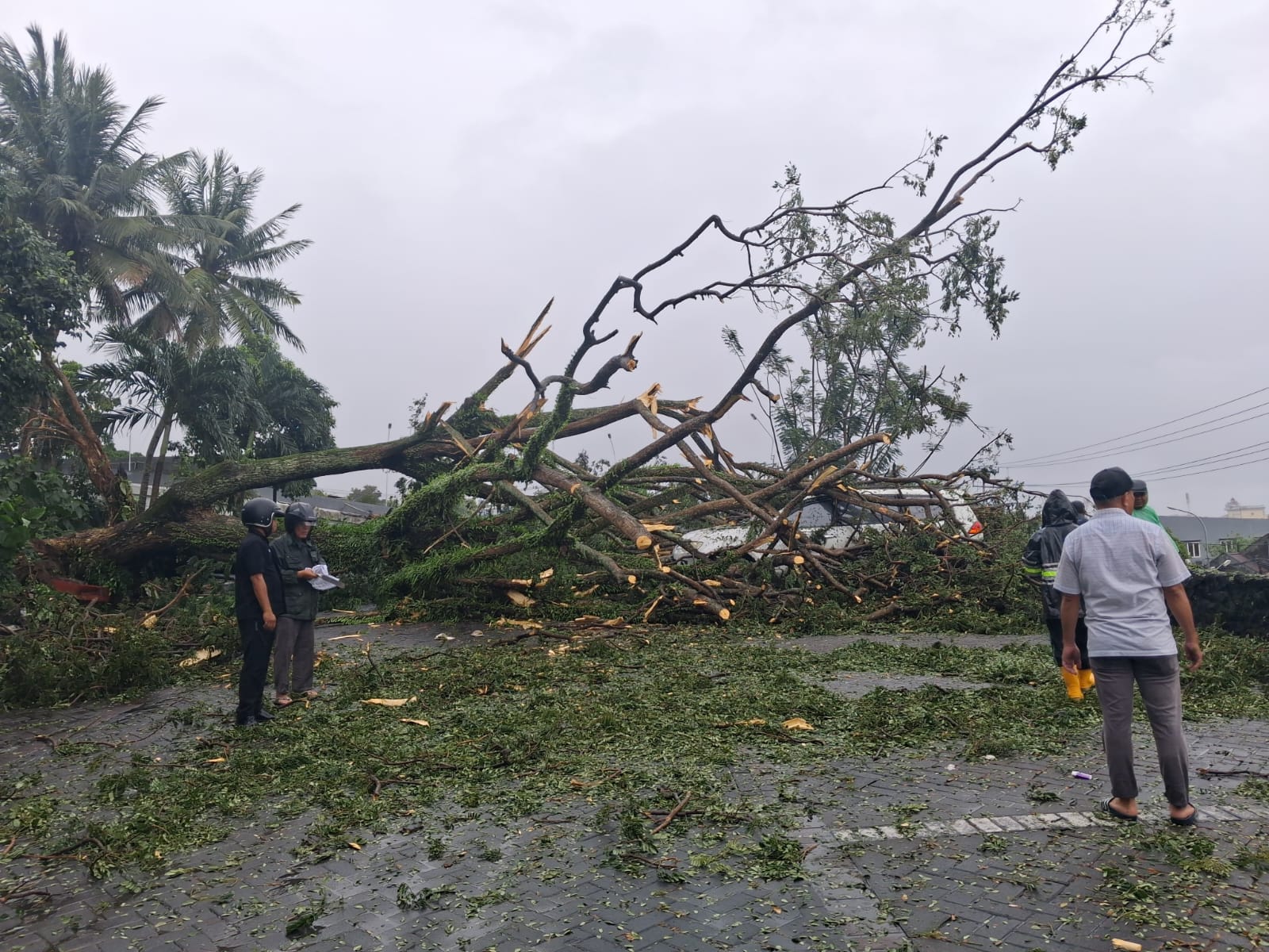 “Kebetulan saya lewat, dan melihat orang lari semua tadi. Saya datang cek, ada 4 mobil tertimpa pohon. Itu kejadian sekitar jam 3 sore tadi,” kata Andi kepada Lingkar.co.id.