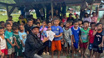 Sesi belajar bersama anak di Desa Roko, Kecamatan Galela Barat, Kabupaten Halmahera Utara. Foto :…