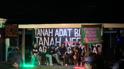 Lingkar.co.id—Spanduk-spanduk bertuliskan tanah adat bukan milik tanah negara dan pangan bukan tambang melekat di setiap…